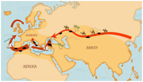 Digerdöden, eller pesten, kom till Europa år 1347. De första registrerade utbrotten var i Kina 1331. Sedan spred den sig via människor och de infekterade loppor de hade med sig längs handelsvägarna. Digerdöden spreds från Krim till Genua och Venedig i Italien som drabbades hårt.