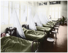 Spanska sjukan kom för hundra år sedan. Det var en ovanligt svår och dödlig form av influensa, som spreds över hela världen. Av dem som fick diagnosen dog 2,5 procent. Vid en normala influensaepidemier dör 0,1 procent. Detta influensavirus slog följe med en aggressiv bakterie för streptokocker. Följden blev en dödlig lunginflammation. De flesta dödsoffren var unga människor utan andra sjukdomar. Vid vanliga influensaepidemier är det barn, gamla och sjuka som drabbas. ”Spanskan” skördade 50 till 100 miljoner människor i världen. I Indien dog över tolv miljoner. I Europa drabbades Italien värst med 400 000 döda.